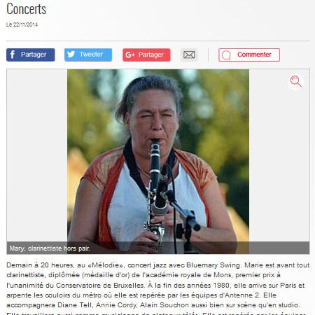 Mary revient donc récemment sur scène (2012) comme soliste et leader de Bluemary Swing.