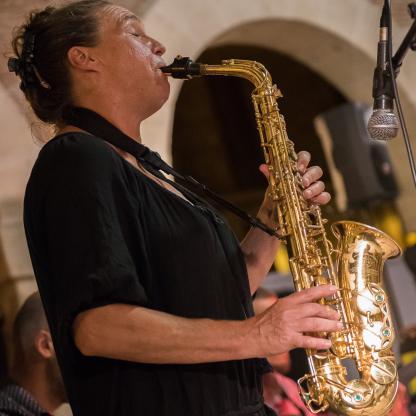 MARY ESTRADE, Clarinettiste / Saxophoniste impressionnante de virtuosité et de punch – également chanteuse Jazz / Blues hors pair – pilote plusieurs formations Jazz – Musette – Chansons… – Tumultueuse et bouillonnante d’énergie.