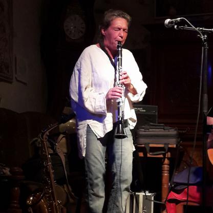 MARY ESTRADE, Clarinettiste / Saxophoniste impressionnante de virtuosité et de punch – également chanteuse Jazz / Blues hors pair – pilote plusieurs formations Jazz – Musette – Chansons… – Tumultueuse et bouillonnante d’énergie.